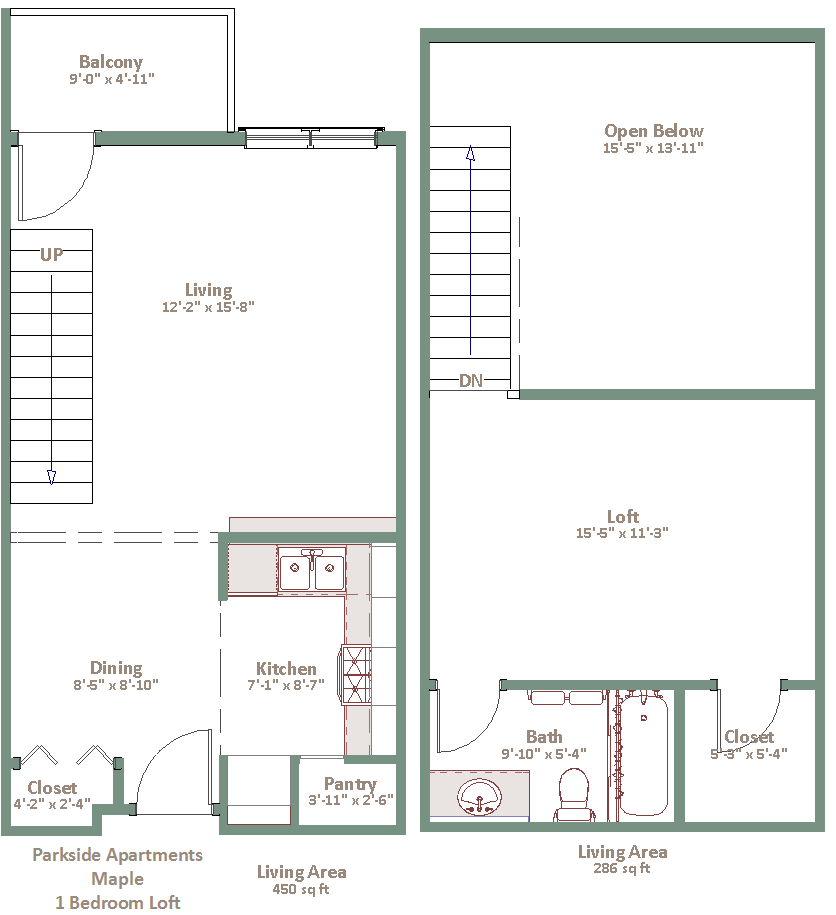 • 1 Bedroom loft apartments